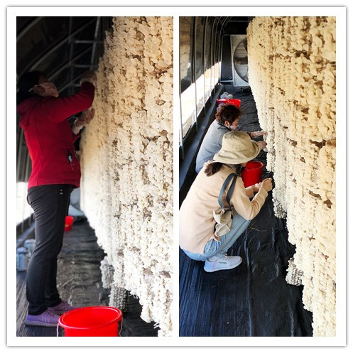 煙臺(tái)棲霞市亭口鎮(zhèn)衣家村山腰間的培育大棚里,一排排一行行玉木耳形如盤狀、晶瑩剔透、如玉似脂。連日來(lái),大棚里人頭攢動(dòng),笑語(yǔ)盈盈,村民們滿懷喜悅采摘玉木耳,好不熱鬧。分裝車間里也是燈火通明,如火如荼,一派繁忙景象,村民熟練地打包、裝箱,近50萬(wàn)斤玉木耳正通過(guò)線上電商、線下商超一箱箱送往全國(guó)各地。