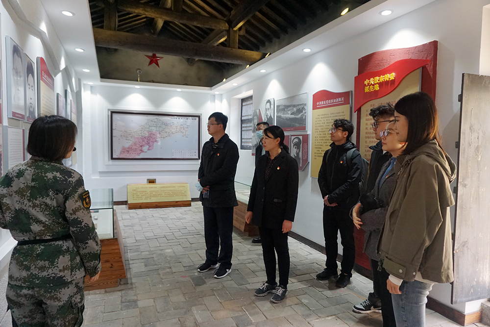 在昆崳山革命紀(jì)念館門(mén)前,全體黨員排列整齊,莊嚴(yán)肅立,在領(lǐng)誓人的帶領(lǐng)下,大家一起重溫了入黨誓詞。隨后,跟隨昆崳山紅色教育基地講解員,一同進(jìn)入紀(jì)念館參觀學(xué)習(xí)。透過(guò)陳列著革命老物件和珍貴照片,大家了解到中共膠東特委誕生,膠東人民革命武裝發(fā)祥,膠東人民兵工發(fā)源,昆崳山駐軍相關(guān)戰(zhàn)斗和建設(shè)的歷程,看到了以于得水為首一批共產(chǎn)黨人領(lǐng)導(dǎo)了的“一一?四”武裝暴動(dòng),開(kāi)啟了昆崳山游擊戰(zhàn),山東人民抗日救國(guó)、膠東革命武裝等革命斗爭(zhēng)。大家認(rèn)真聆聽(tīng)講解,無(wú)不為英雄們偉大的革命精神所感動(dòng)。