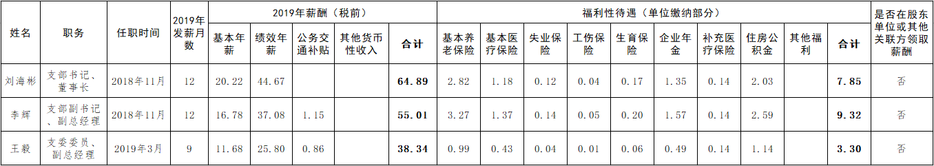 煙臺(tái)財(cái)金集團(tuán)負(fù)責(zé)人2019年薪酬披露信息表(單位:萬(wàn)元)