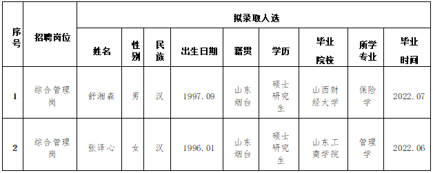 按照集團(tuán)7月11日發(fā)布的招聘公告,經(jīng)簡(jiǎn)歷投遞、資格審查、筆試、面試、集體決策等環(huán)節(jié),擬確定部分校招崗位錄取人選,現(xiàn)予以公示,公示期為5個(gè)工作日(8月1日至8月5日)。本次公開招聘崗位中綜合管理崗已招滿,此崗位招聘終止。